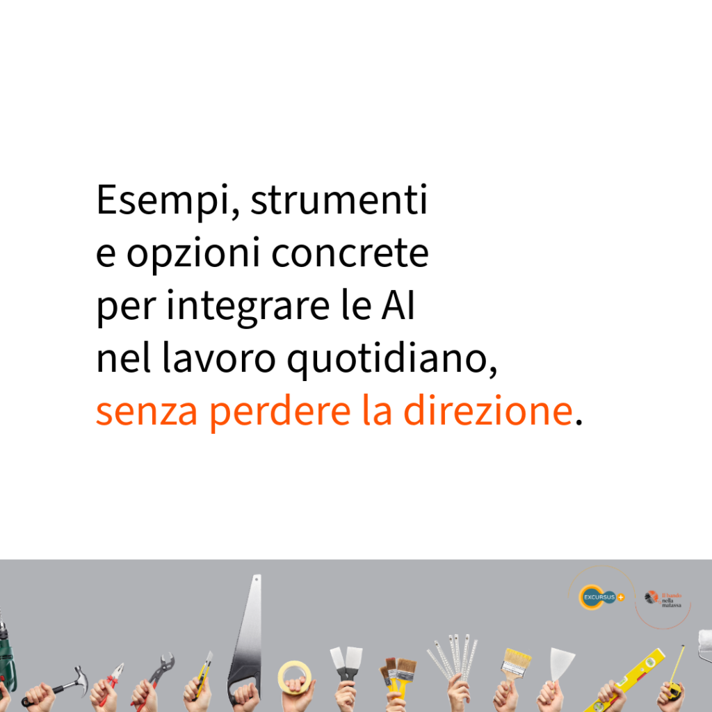 Non promettiamo soluzioni pronte ma un approccio, accompagnato da esempi e un modo più lucido di guardare a come usare le AI nel nostro lavoro.