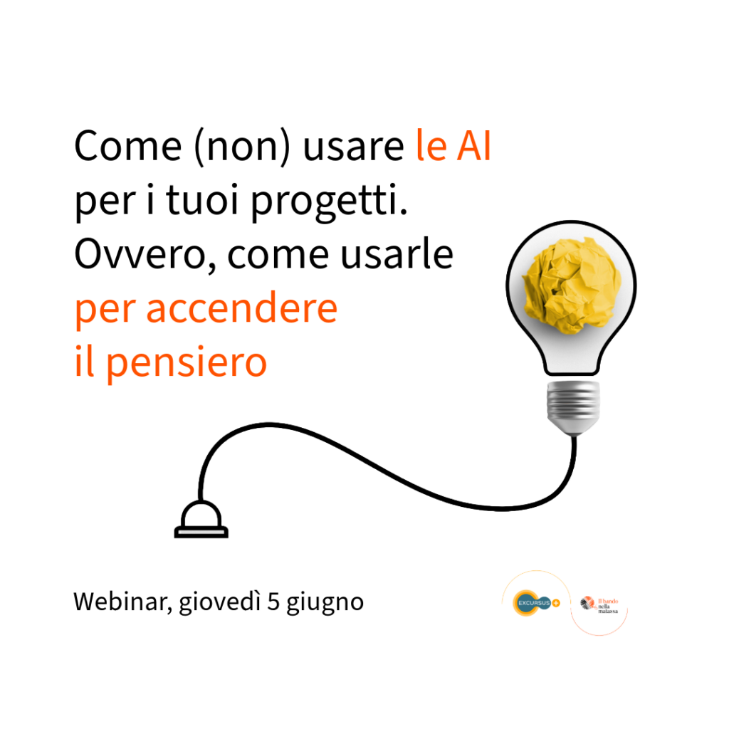Vogliamo tenere insieme strumenti e pensiero, tecnologia e visione, con la consapevolezza di che cosa rischiamo di perdere quando deleghiamo – anche inconsapevolmente – le nostre scelte. In questo webinar proponiamo uno spazio per riflettere, insieme, su come le AI possano essere davvero un’opportunità di miglioramento nelle nostre organizzazioni. Anche attraverso esempi/strumenti e proponendo modi possibili per integrarle nel lavoro quotidiano, senza perdere la direzione.
